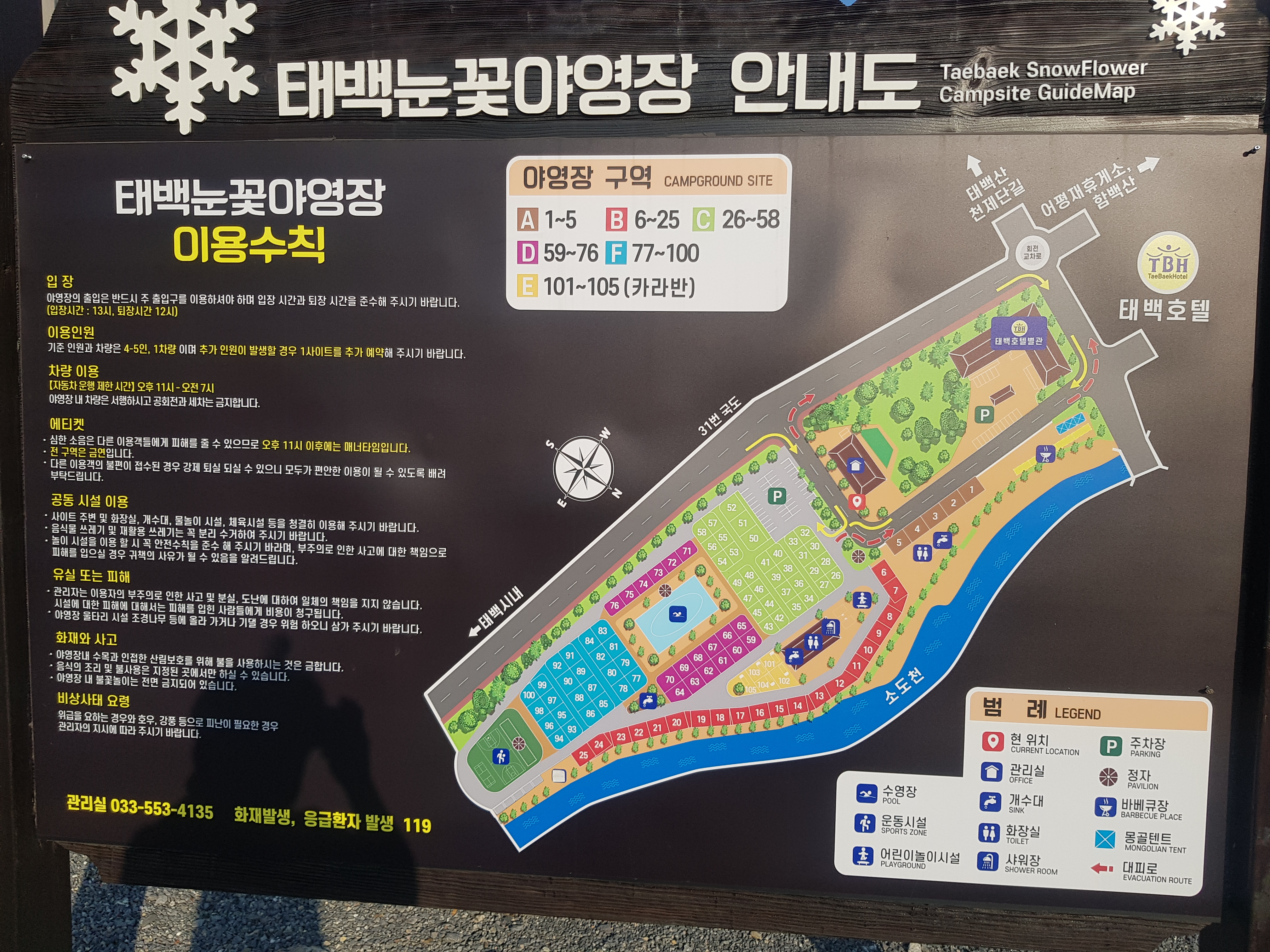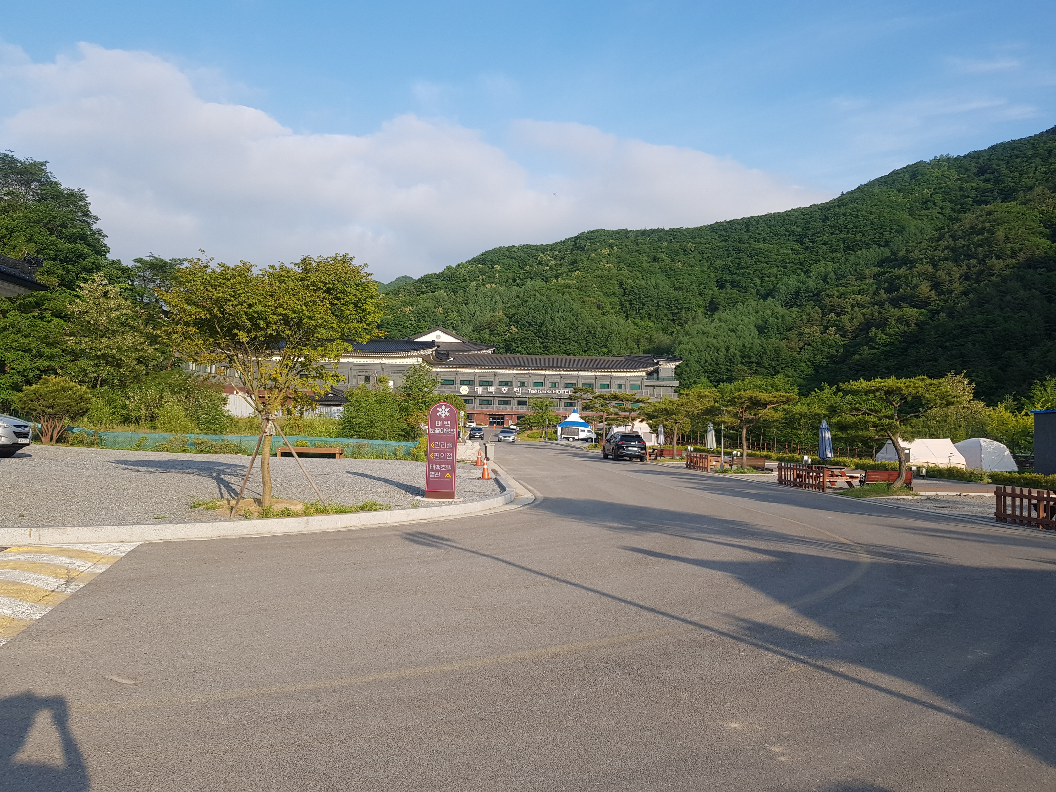 캠핑장은 태백호텔과 마주보고 있고,캠핑장은 상당히 넓고 깔끔하게 잘 관리가 되고 있었다.