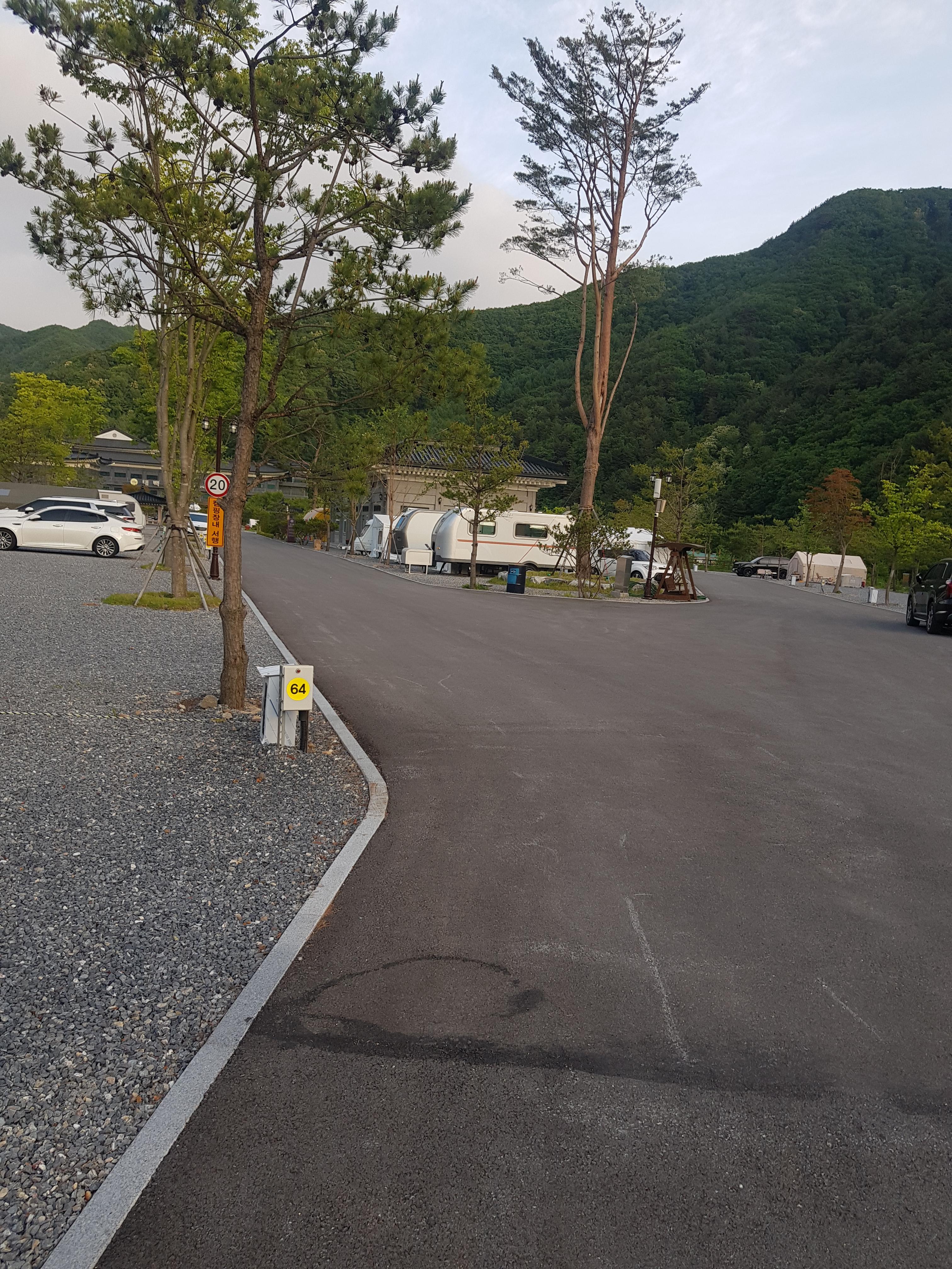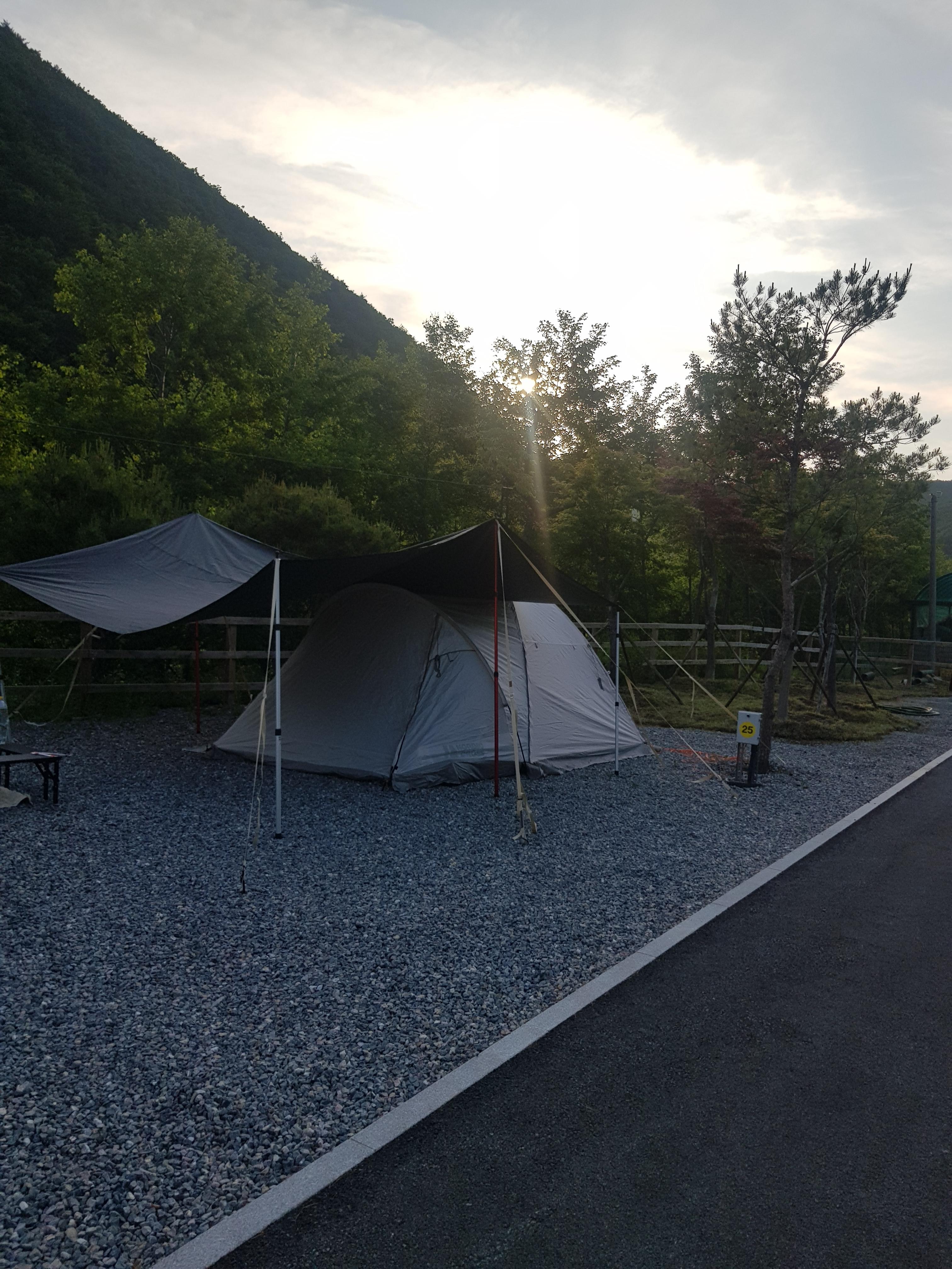 싸이트중 6~25번 파쇄석이고 옆으로 계곡이 있어서 밤에는 시냇물 소리가 들려 아주 좋았다.